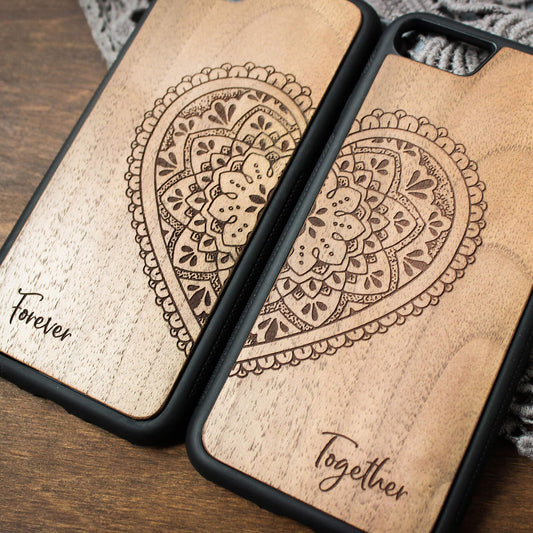 Mandala - Wooden Pixel Case for Couple