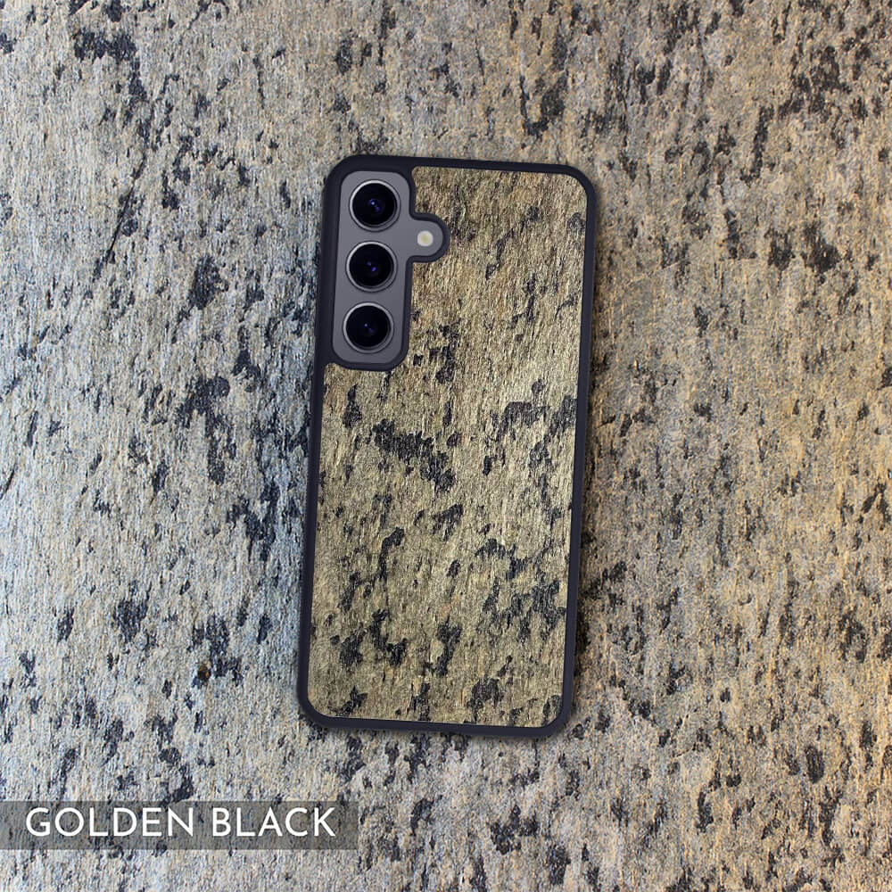 Transform your phone into a sleek work of art with the Golden Black Stone Galaxy S9 Case.